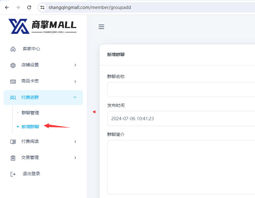 3.左侧导航栏,点击“群聊管理”-“新增群聊”