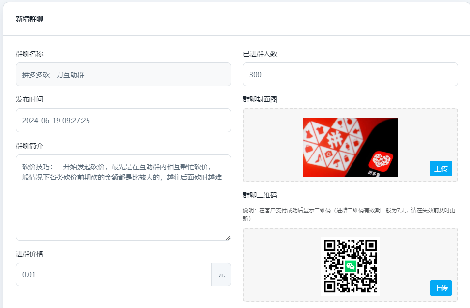 4.填写好群聊信息,如标题,简介,配置,进群二维码等,即可发布了(注意:不可发布违法违规内容,包括但不限于色情,赌博,诈骗,一经发现立刻封号)