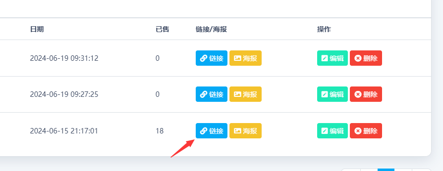 5.返回列表页,点击“链接”按钮即可获取到进群链接,点击“海报”按钮,即可获取到朋友圈海报
